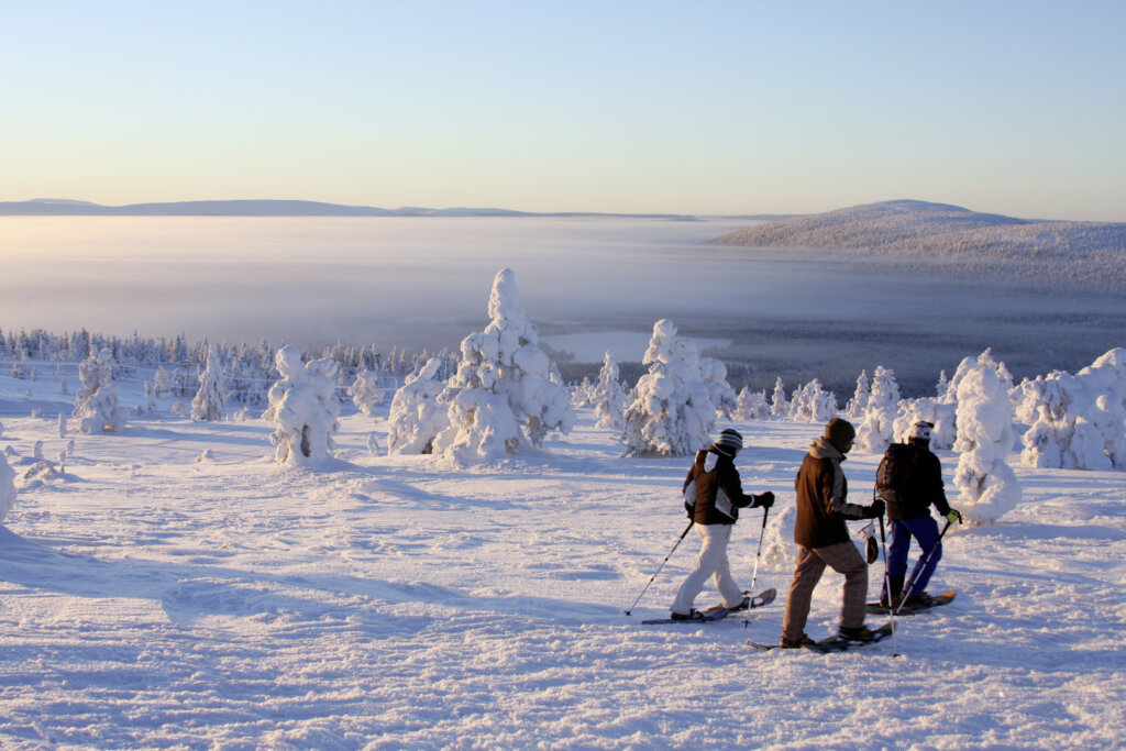 Schnallen Sie heute Ihre Schneeschuhe an und freuen Sie sich auf eine schöne, gemütliche Tour in die Region des Kellostapuli. Die Wanderung verläuft auf relativ flachem Gelände und ist auch für Anfänger geeignet. Bei schönem Wetter geniessen Sie eine wunderbare Aussicht auf das Dorf Äkäslompolo und die umliegenden Fjelle. Bei einer typischen Hütte machen Sie Halt und sind zu heissem Beerensaft und feinen Muffins eingeladen. Wer Lust auf eine sportliche Herausforderung hat, darf gerne den Aufstieg zum Kellostapuli unter die Füsse nehmen. Nach dem Mittag sind Sie zurück und haben noch genügend Zeit für eigene Aktivitäten. Vielleicht haben Sie heute Abend Glück und die Nordlichter tauchen auf. Auf dem zugefrorenen See haben Sie die beste Aussicht für das Spektakel!