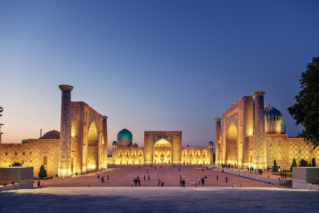 Weiterreise nach Samarkand. Die Stadt ist einer der grossen Höhepunkte einer jeden Usbekistan-Reise und Sehnsuchtsort vieler Reisender. Die Geschichte von Samarkand und den Vorgängern Afrosiyob und Marakanda reicht über 2700 Jahre zurück. Sie besuchen den legendären Registan-Platz in den Abendstunden.